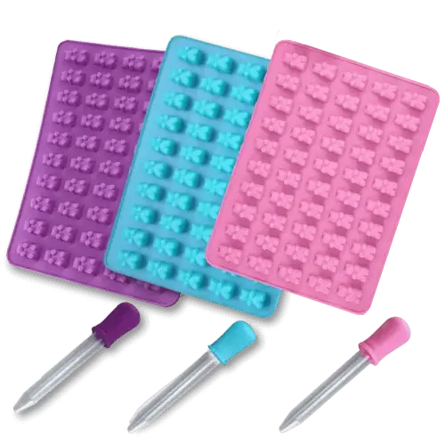 Silikónová forma na výrobu domácich gumových medvedíkov s dávkovacou pipetkou. Je to zábava pre malých aj veľkých, veď kto by nechcel mať v krabičke zásobu vlastoručne vyrobených mini mackov rôznych farieb a chutí? Navyše zdravých, z ovocného pyré alebo šťavy? Medvedíkov môžete vyrobiť zo želatíny alebo agaru, ako komu vyhovuje. Prípadne môžete formu použiť na mrazenie džúsu, šťavy, smoothie a ozvláštniť nimi potom pohár úplne obyčajnej nudnej vody či raňajkovej kaše. Súčasťou balenia je aj malá pipeta, ktorá zaujme každého výmyselníka a uľahčí výrobu medvedíkov.
