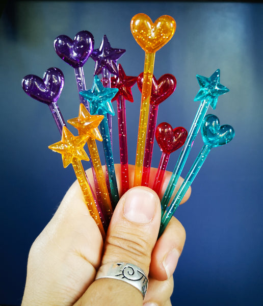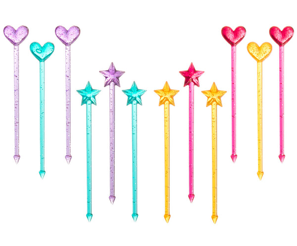 Krásne trblietavé hviezdičkové a srdiečkové kokteilové špízy na napichovanie ovocia, zeleniny či chlebíka ozvláštnia každú párty či lunchbox. Napichovátka sú o čosi dlhšie  v porovnaní s ostatnými napichovátkami v našom sortimente, merajú 9cm. V sade ich je 12 kusov