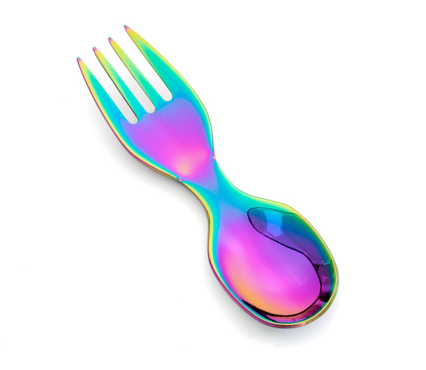 Populárny dúhový efekt nie je potlačou, ale je vytvorený povrchovou úpravou. Farba sa preto môže individuálne líšiť. Každá vidličko-lyžica je jedinečná!