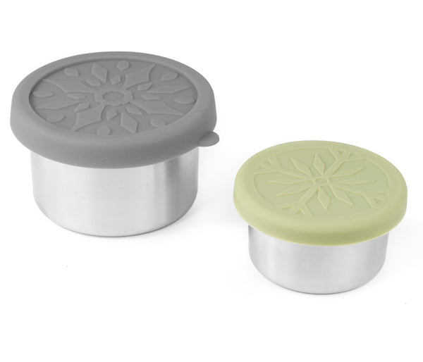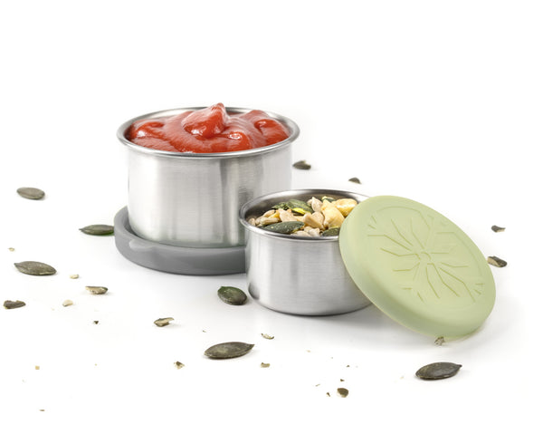 Táto sada obsahu je 2 nádobky z nehrdzavejúcej ocele so silikónovými viečkami. Sú rôznych veľkostí a farieb. Vyrobené sú priamo pre boxy Lekkabox, ale pasujú do akéhokoľvek lunchboxu.